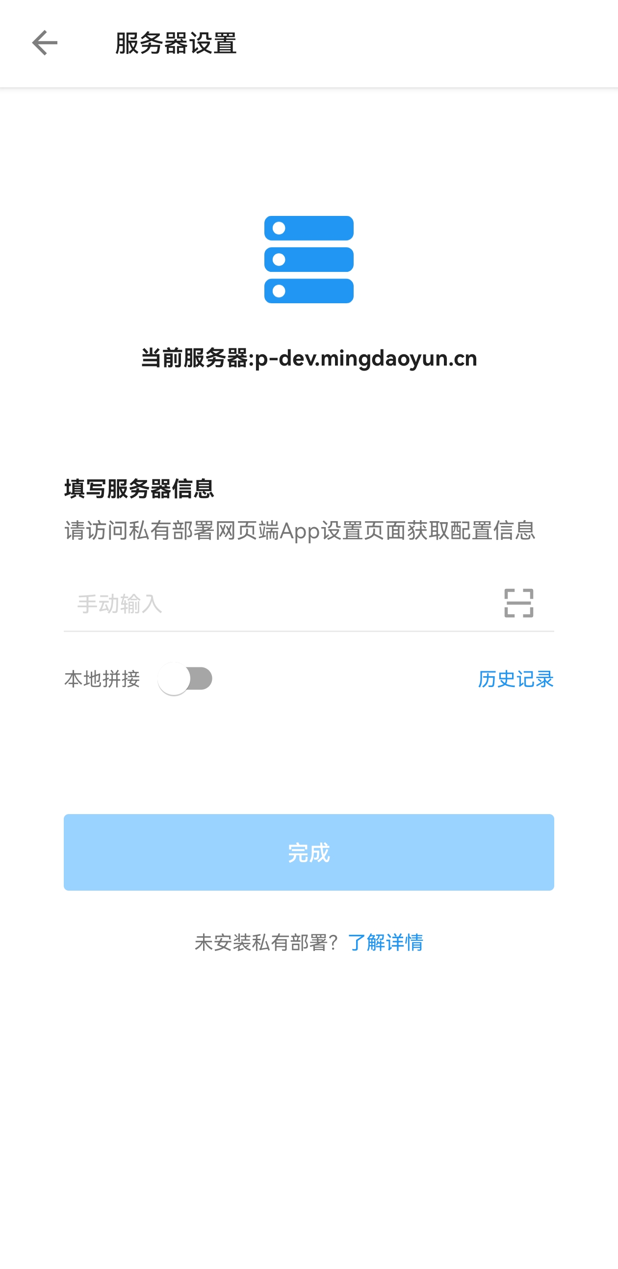 FAQs使用问题App 服务器信息配置App 服务器信息配置 点击头像显示菜单列表,然后进入 下载客户端 页面 扫码下载私有部署版 App 客户端 服务器信息配置 打开 App 进入服务器设置页面,复制或扫描二维码自动完成配置